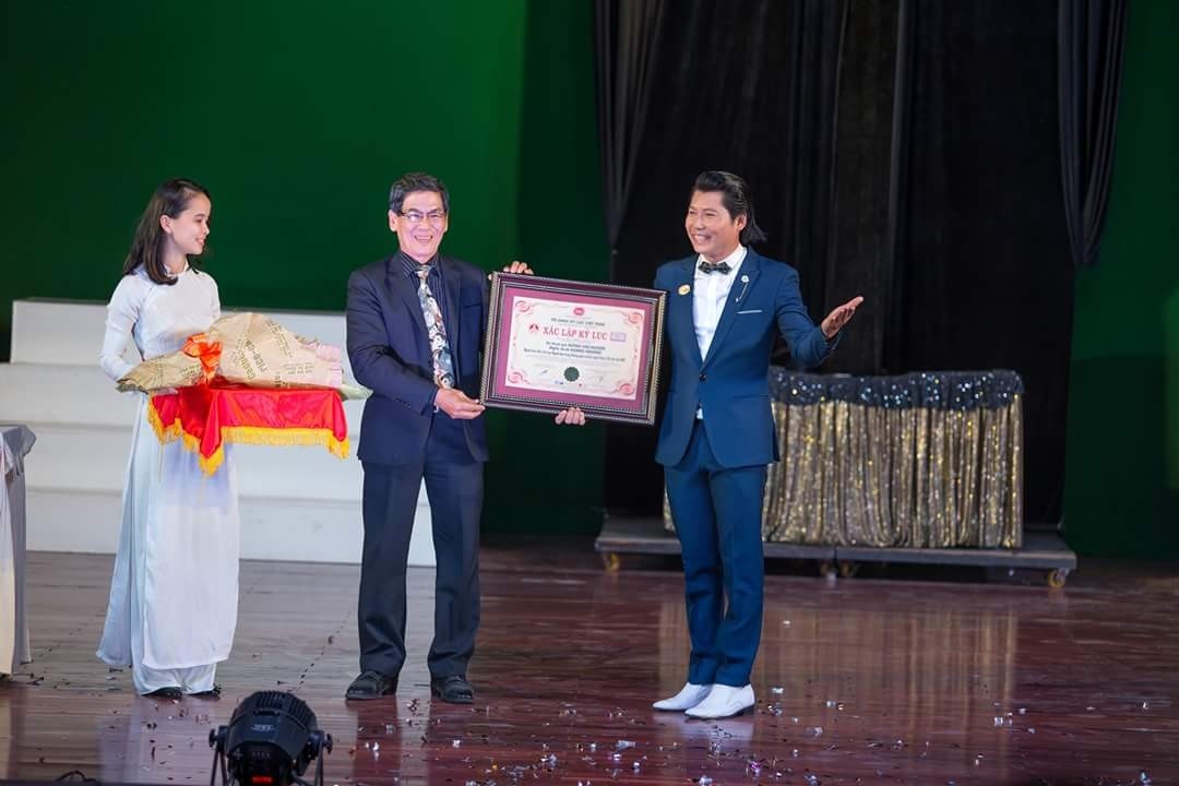 Hoàng Nghiêm nhận chứng nhận và cúp Kỷ lục Guinness Việt Nam