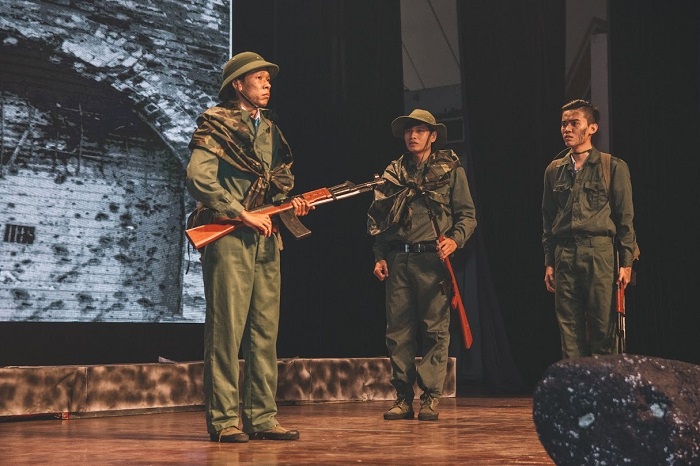 Vở diễn được dàn dựng theo thể tài chính kịch và được đan xen hợp lý giữa phần biểu diễn kịch nói và phần âm nhạc với các ca khúc như: Miền xa thẳm, Linh thiêng Việt Nam, Hành khúc tuổi trẻ, Bác đang cùng chúng cháu hành quân, Hát mãi khúc quân hành… và các trích đoạn múa: Trận chiến hoa lửa, Qua sông… được dàn dựng hoành tráng ấn tượng với sự tương tác của màn hình LED hiện đại khi thì tả ý, khi tả thực giúp cho vở diễn đi vào lòng người một cách tự nhiên và đã chạm đến được cảm xúc của người xem.